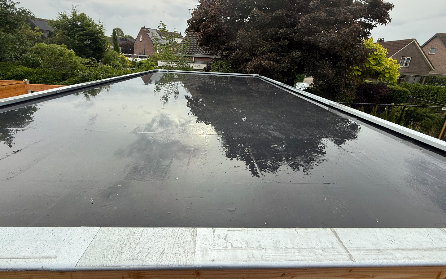 De overkapping biedt voldoende ruimte voor een loungeset of eettafel en maakt het mogelijk om langer van de tuin te genieten, ook als het weer wat minder is. Door de nette afwerking en stevige constructie past het geheel mooi in de tuin en voelt het als een volwaardig onderdeel van de buitenruimte.