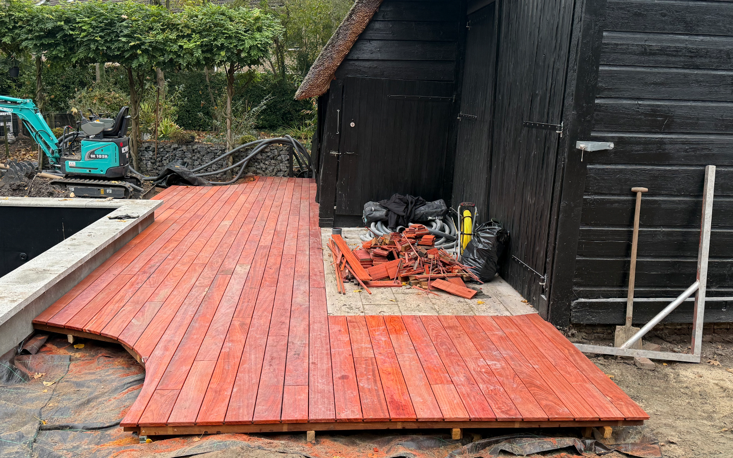 De vlonder is zorgvuldig opgebouwd en stevig gefundeerd, zodat deze jarenlang meegaat en bestand is tegen weer en gebruik. Het resultaat is een praktische én sfeervolle plek om te zitten, te ontspannen of de tuin verder in te richten.